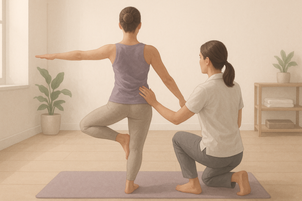 Physiotherapy works on the physical structure: muscles, joints, and mobility, using evidence-based techniques to restore normal function after injury or chronic pain. Yoga, on the other hand, nurtures the mind-body connection, supporting recovery through mindful movement, breath, and relaxation.